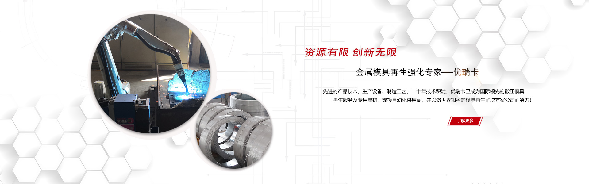優(yōu)瑞卡(大連)焊接技術(shù)有限公司是國際領(lǐng)先的鍛造模具再生服務(wù)及專用焊材、焊接自動化供應(yīng)商,我們的產(chǎn)品涵蓋金屬模具焊接再生和延壽強(qiáng)化的各個環(huán)節(jié)